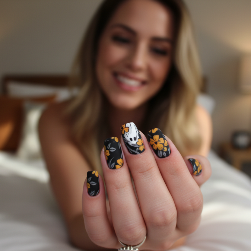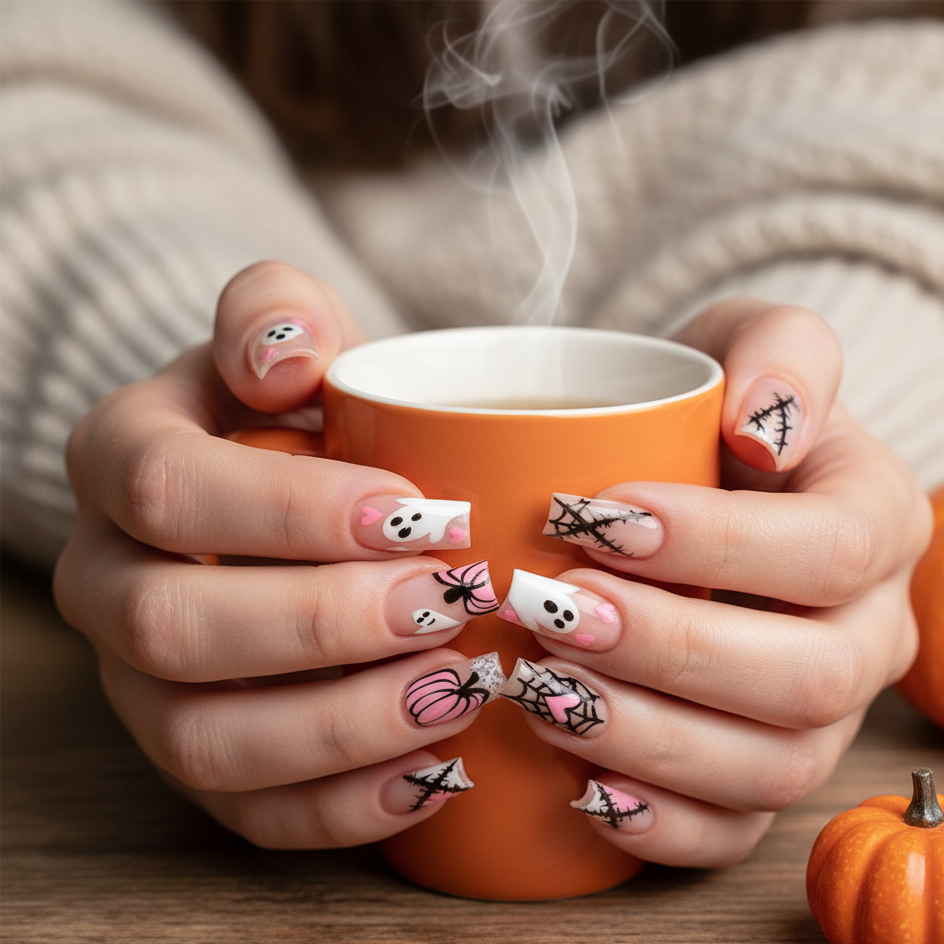 We offer a variety of seasonal nail designs, including Halloween and autumn-themed nails for all occasions.